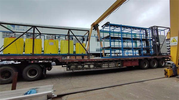 為確保設(shè)備不受磕碰,所有設(shè)備配件都是用鋼結(jié)構(gòu)架或箱體打包,此次裝車12輛、共用三天時(shí)間完成發(fā)貨?,F(xiàn)場(chǎng)我們看到裝車師傅有序的操作著行車裝車,裝車后發(fā)往連云港港口再運(yùn)往印尼。后續(xù)工程安裝,請(qǐng)大家繼續(xù)關(guān)注我們,有除鹽水項(xiàng)目需求請(qǐng)聯(lián)系我們!
